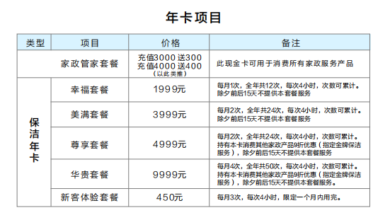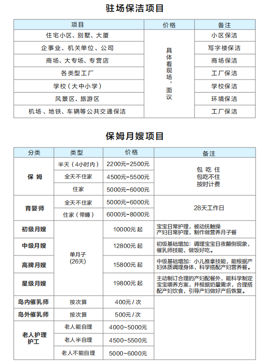 孔雀河家政服務(wù)參考價格表